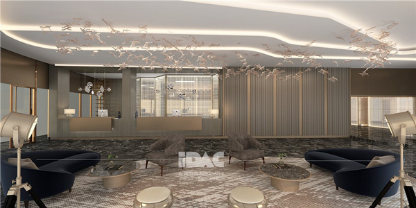 精品酒店大堂裝修設(shè)計中,大氣與美觀是最基本的要點;大氣主要通過空間性與視覺感實現(xiàn),空間不可太小,在充分利用原有建筑結(jié)構(gòu)的基礎(chǔ)上可進(jìn)行適度擴(kuò)張,對于無法擴(kuò)張的空間,可采用鏡面材質(zhì)造型或飾面的處理手法;空間的高度不可太低,從空間感的設(shè)計角度來講,越高的空間越有氣勢。另一方面,美觀的效果主要通過造型、材質(zhì)選擇及燈光三個方面進(jìn)行設(shè)計。