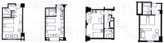 套房的數(shù)量和所占比例因酒店的規(guī)模和類型而定。大多數(shù)酒店有2%~5%的套房配置,高級酒店和會議酒店的套房數(shù)量則可以達(dá)到10%。套房大多位于景色優(yōu)美的頂層位置,有些也會被放置在建筑結(jié)構(gòu)提供的異型房或者用來填補(bǔ)在特殊邊層的某個建筑空間。