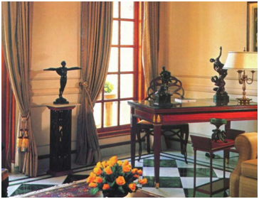 總統(tǒng)套房一般是位于酒店的頂層,具有最佳的景觀位置、隱蔽性也較強(qiáng)。面積大約為500㎡,其功能區(qū)可分為接見廳、會客廳、多功能廳、總統(tǒng)臥室、夫人臥室、書房、臥房、廚房和衛(wèi)生間等,布局合理、安全、高效,裝修豪華寬敞、溫馨舒適、富有情調(diào)??偨y(tǒng)套房有獨(dú)立的專用進(jìn)出通道,與其他樓層的客人分開。