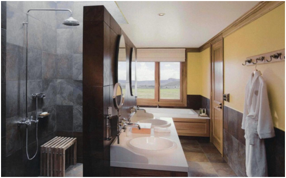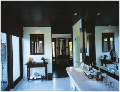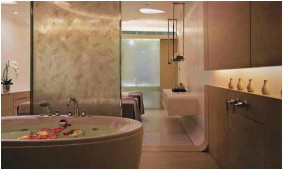 酒店客房衛(wèi)浴部分是體現(xiàn)酒店整體硬件設(shè)施標(biāo)準(zhǔn)的最為重要之處,傳統(tǒng)的酒店一般由于照顧結(jié)構(gòu)設(shè)計(jì)和給排水設(shè)計(jì)的方便,很多客房的衛(wèi)浴部分都被安排在靠近走道一側(cè)的位置,這樣的布局決定了衛(wèi)浴部分一般不能自然通風(fēng)采光,這種封閉式的衛(wèi)生間成了房中之房,成為客房之中的“黑洞”,使衛(wèi)浴部分成了消極空間。所以在現(xiàn)代酒店客房衛(wèi)浴部分的設(shè)計(jì)除了要有完備的功能和方便、衛(wèi)生、安全等最基本的要求外,還必須考慮住客對衛(wèi)浴部分的精神需求,通過對衛(wèi)浴部分布局的創(chuàng)新、空間的變化、視覺的豐富等因素來滿足住客的需要。衛(wèi)浴部分是最能給住客提供新奇體驗(yàn)的場所。衛(wèi)浴部分和客房其他部分的分隔多用玻璃,或簾幕分隔,甚至沒有分隔,如把浴缸和床結(jié)合起來,這樣可以讓客房內(nèi)空間更加流暢,各部分關(guān)系更加緊密,增加空間趣味性。人的生理特點(diǎn)總是喜歡親近自然,人工的通風(fēng)和采光是非人性化的,自然的采光和通風(fēng)使人感覺親切。有些風(fēng)景名勝地的度假精品酒店甚至直接把浴室設(shè)置在露天環(huán)境里,當(dāng)然這需要一定的條件。衛(wèi)浴部分的空間和客房其他部分分隔模糊化,開放式的衛(wèi)生間越來越受到住客的歡迎。