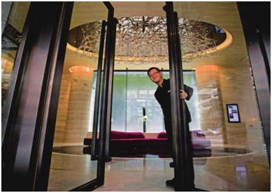 當(dāng)客人到達(dá)酒店時(shí),他們首先看到的是酒店的入口,這會(huì)給客人留下第一印象。對(duì)于酒店來(lái)說(shuō),入口不僅是進(jìn)出的通道,也是室內(nèi)和室外的過(guò)渡空間。入口包括門、門洞、臺(tái)階、引道、入口廣場(chǎng)和該范圍內(nèi)的其他因素(如鋪地、綠化、欄桿、水景、雕塑、停車場(chǎng)等)。