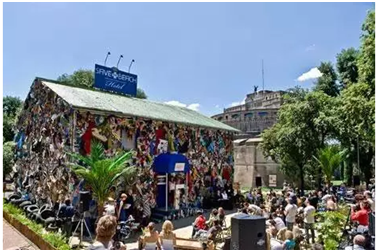 意大利羅馬堪稱這個世界上最漂亮的城市之一,其美輪美奐、獨一無二的建筑及人文氛圍讓全世界游客慕名而來。但受羅馬當?shù)鼐用窈陀慰蛠y丟垃圾的影響,羅馬海灘目前幾乎變成一個垃圾場。2010年6月,為了保護這片旅游勝地,德國藝術家哈·舒爾特發(fā)起“保護日落海灘”運動,利用從羅馬海岸線上撿回的垃圾在當?shù)亟ㄔO出一棟臨時“垃圾旅館”,以警示民眾保護海灘環(huán)境。據(jù)悉,超模海倫娜·克里斯已經(jīng)習慣于居住在那種豪華的五星級賓館中,但作為環(huán)?;顒蛹业乃€是決定在這家“垃圾旅館”中體驗一個晚上,以加強其對海灘環(huán)保保護的意識。