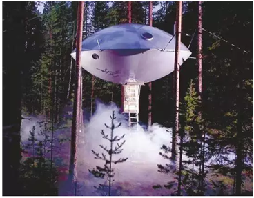 瑞典北部拉普蘭地區(qū)的哈拉斯村附近建有一座外形酷似UFO的“太空酒店”,每年都會吸引大量來自世界各地的科幻迷前來下榻,盡享身處不明飛行物內(nèi)的非凡感覺。旅館內(nèi)部則分上下兩層,共有兩套雙人間客房,可同時供四位房客居住,住宿費最貴約為每晚420英鎊(約合人民幣4130元)。其實,“太空酒店”是瑞典著名的“樹屋酒店”(Tree Hotel)旗下一系列主題酒店之一。除了這個充滿奇幻色彩的UFO主題酒店以外,該酒店還擁有多個造型迥異且現(xiàn)代感十足的特殊主題酒店。
